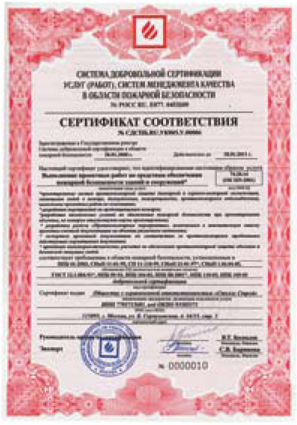 Большинство сотрудников компании имеют высшее образование в области пожарной безопасности. Их многолетний опыт работы в органах Госпожнадзора, подразделениях пожарной охраны объектов и в сфере пожаротушения приносит исключительную пользу в разработке противопожарной защиты объектов любой сложности. Указанные специалисты, используя уроки реальных пожаров, при разработке противопожарных мероприятий учитывают этот «опыт» и способны реализовать вопросы безопасности людей, сокращения убытков от возможных пожаров, недопущения пожаров, а в случае их возникновения – быстрое обнаружение и ликвидацию, оптимизируя затраты на реализацию противопожарной защиты.